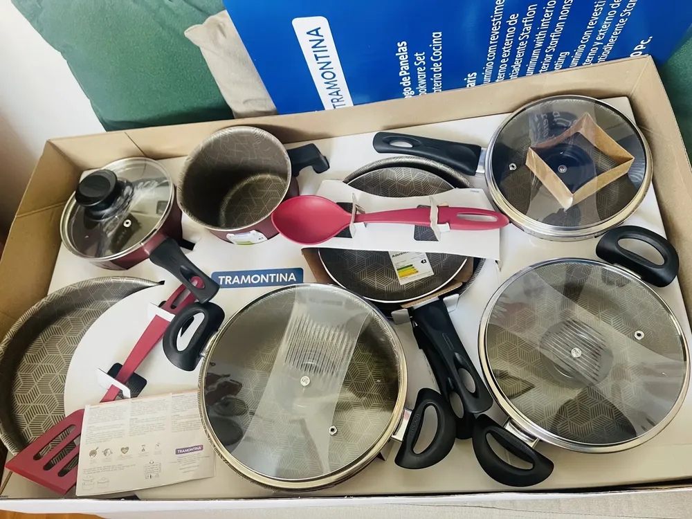 "Eu na verdade me surpreendi com a qualidade do produto, as panelas são lindas, não são pequenas e eu amei. Podem comprar sem medo, eu recomendo."